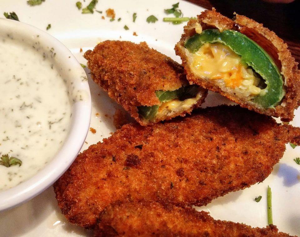 Commençons avec les Jalapeño poppers qui sont un incontournable de la gastronomie de bistro américaine. Les piments jalapeño sont évidemment originaires du Mexique et l’idée de les fourrer au fromage (type cheddar) et de les frire, vient du sud des États-Unis, qui s’est amusé à frire absolument TOUT ce qui existe sur la planète (cornichons, avocats, cookies, huitres, …). Les Jalapeño poppers mélangent le punch du piment à la douceur moelleuse du fromage fondu et le croustillant de la chapelure et il faut bien avouer que c’est assez bon!