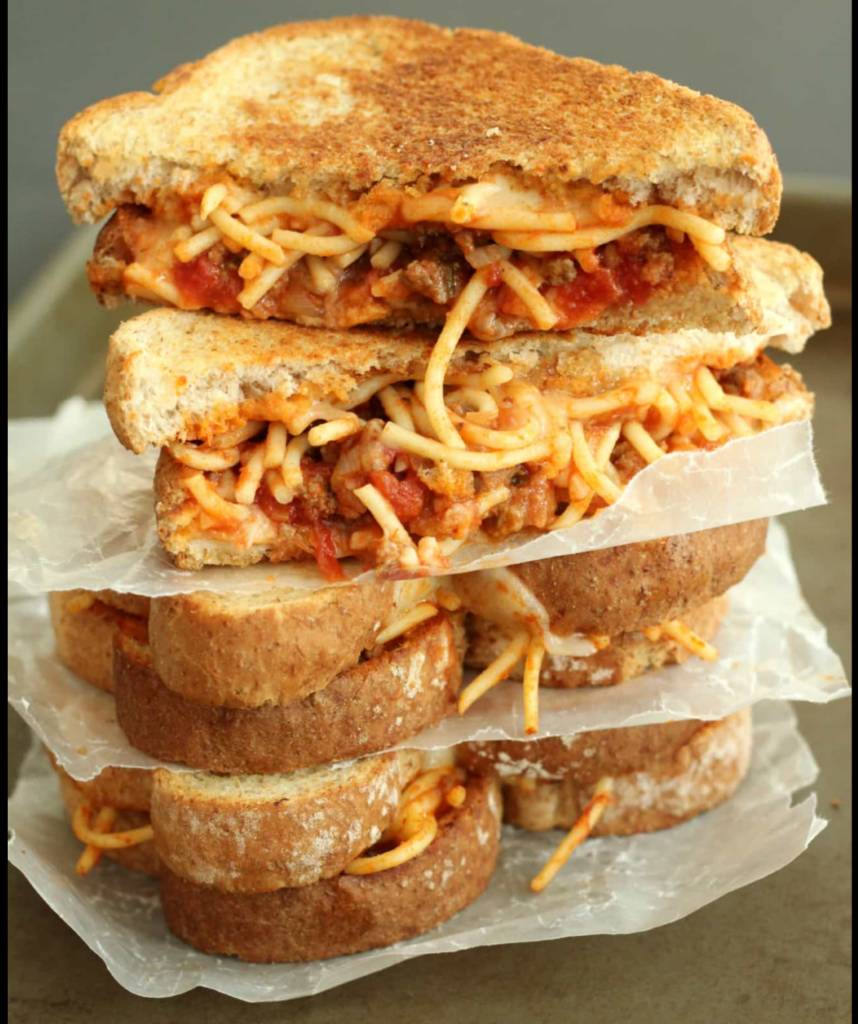 Enfin je terminerai sur une légende (ou non) qui raconte qu’il est possible d’utiliser ses restes de spaghetti pour en faire un spaghetti sandwich entre deux tranches de pain de mie (trop sucré). On me dit même dans l’oreillette qu’on peut mélanger n’importe quel reste de pates avec de la sauce ranch (une sorte de mayo + crème fraiche avec de l’aneth et ciboulette) et les mettre dans du pain de mie préalablement toaste avec du beurre. J’avoue n’ai jamais eu l’occasion de gouter le spaghetti sandwich