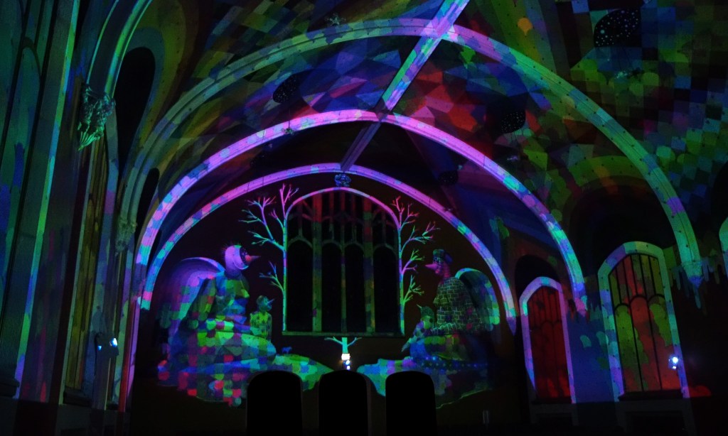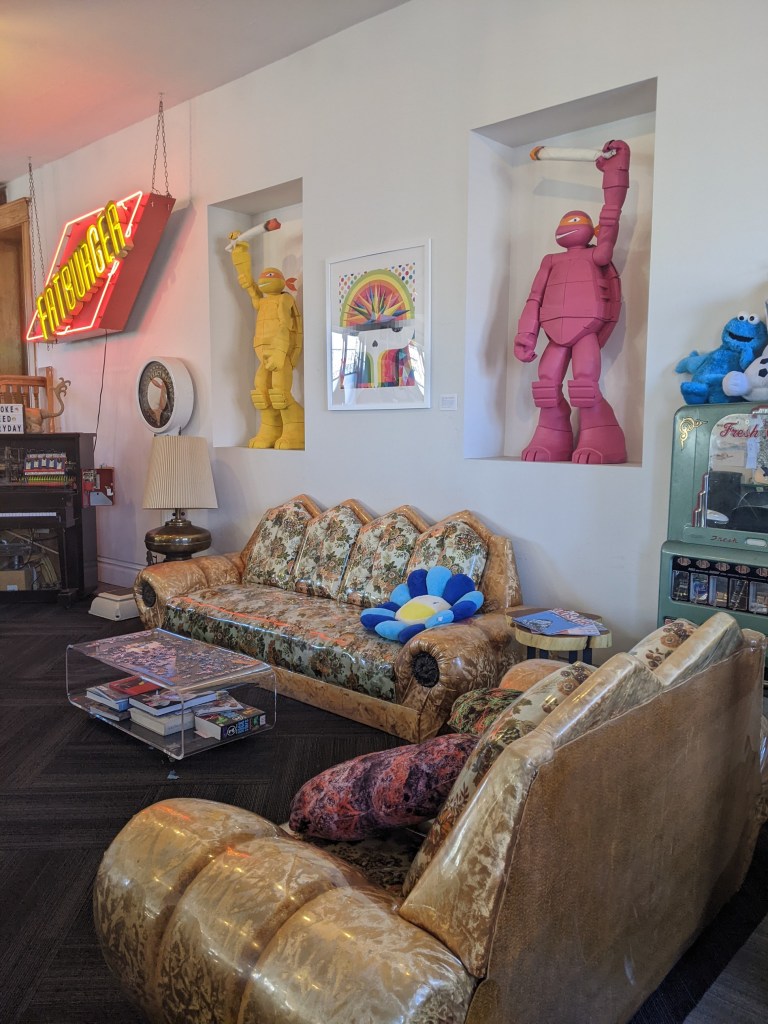 Depuis peu, l’endroit offre un spectacle sons et lumières au premier étage ou les murs sont recouverts des œuvres de l’artiste Okuda San Miguel, Le spectacle de 30 minutes combine jeux de lumières, musique et des textes spirituels pour une expérience des sens. Le spectacle est payant $25 par adulte et la consommation de cannabis n’est pas autorisée. Les tickets peuvent être achetés sur place ou sur le site des Elevationists https://elevationists.org/ Un expérience méditative et transcendante à ne pas manquer quand vous visitez Denver!